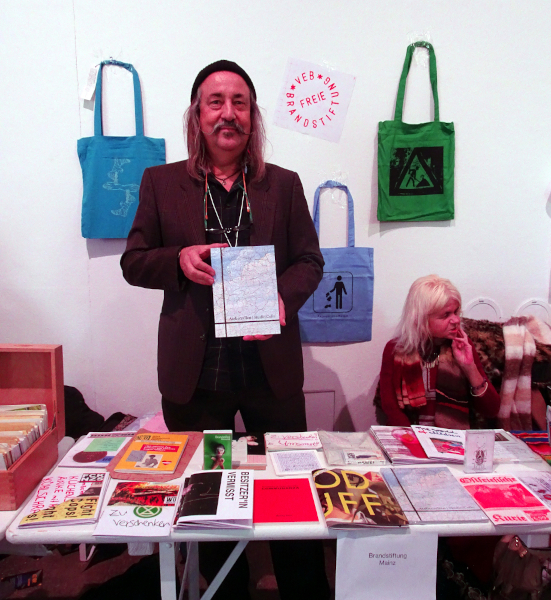 Vernissage der internationalen Mail Art Ausstellung mit einer kinetischen Collage von Brandstifter