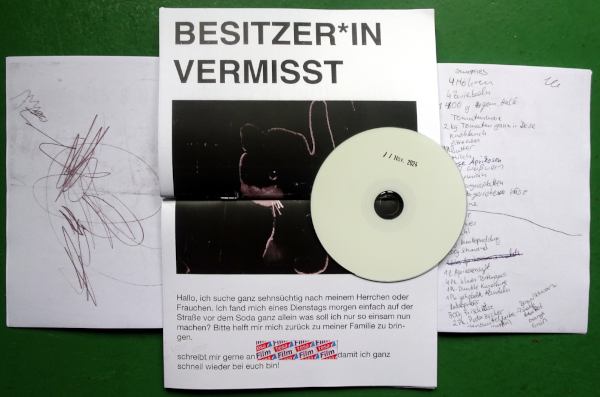 Artzine with collaged found pieces from public space, 20 pages A5, hand xeroxed, stapled, numbered and signed edition of only 10 copies, with on site fieldrecoding and soundpoetry on handstamped CDr